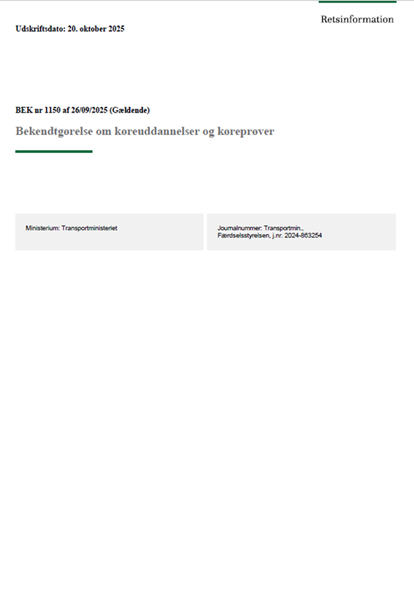 Bekendtgørelse om køreundervisning og køreprøver